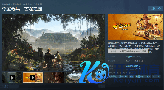 《夺宝奇兵:陈旧之圈》现已持重发售,高等版于12月6日(提前3天)开启抢先体验。竣事发稿前,游戏在Steam取得了“很是好评”的评价,1130篇用户评测,好评率92%。