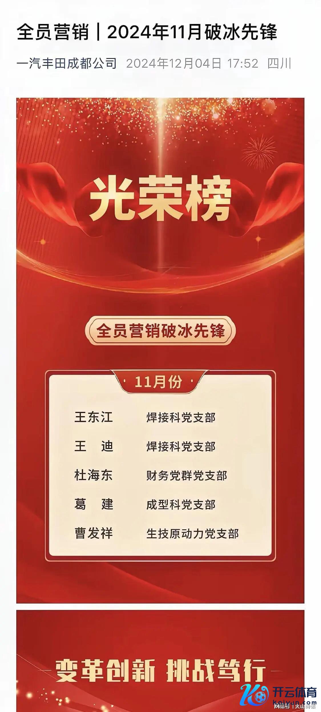从获奖名单来看,皆口舌销售部门的二线部门以及出产一线部门的,包括财务、焊合科、成型科、生技部门。发文末尾,是“变革改进挑战笃行”几个大字。由此可见,一汽丰田庐面也正在组织全员营销动作,可见里面的“内卷”也呈现尖锐化。