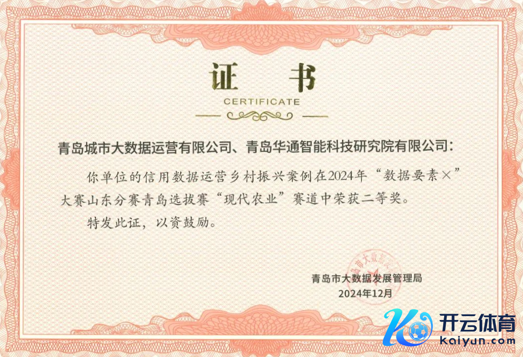 12月26日,2024年“数据因素×”大赛山东分赛青岛聘用赛公布获奖名单,该聘用赛由国度数据局、山东省大数据局率领、市大数据局、市科技局、市交通输送局、市农业农村局、市卫生健康委等部门(单元)共同举办,青岛华通智研院动作青岛市群众数据运营独一授权试点单元,从繁密参赛机构中脱颖而出,与青岛城市大数据运营有限公司聚积呈报的口头获评“当代农业”赛说念优秀案例二等奖。