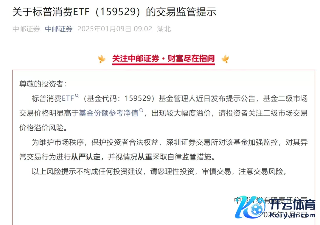 中邮证券发布信息潜入,深圳证券交往所已对景顺长城标普挥霍ETF加强监控,对其相等交往当作进行从严认定,并视情况从重领受自律监管法子。