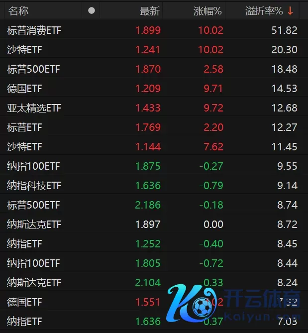 除了景顺长城标普挥霍ETF除外,部分跨境ETF也出现高溢价率情状。