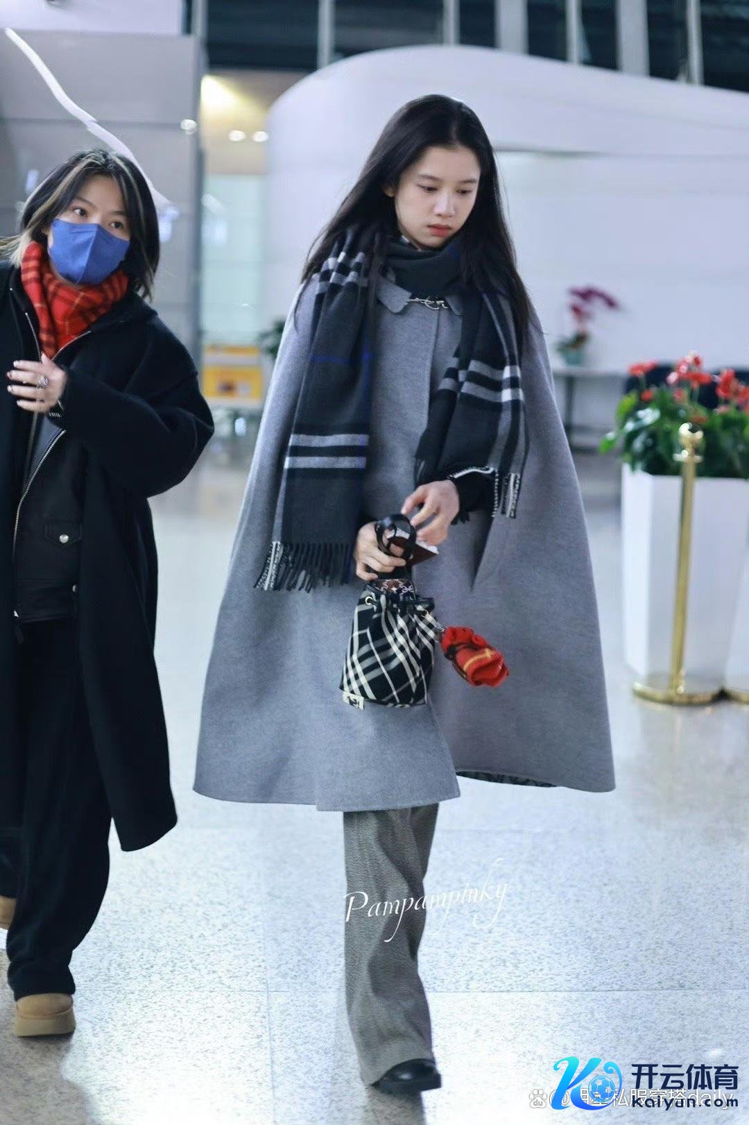 在前去伦敦时装周的机场造型中,张婧仪遴选了一款灰色大氅大衣,搭配格纹领巾,展现出一种高档而端淑的气质。这款大衣的盘算推算私有,大氅式的剪裁不仅突显了她的高挑肉体,还增添了几分私密感。下半身的灰色直筒喇叭裤与玄色高跟鞋长短分明,既拉长了腿部线条,又擢升了举座的前卫感。手中的格纹水桶包更是点睛之笔,红色格纹玩偶的加入让举座造型愈加灵活道理,仿佛是在拍摄一部偶像剧。