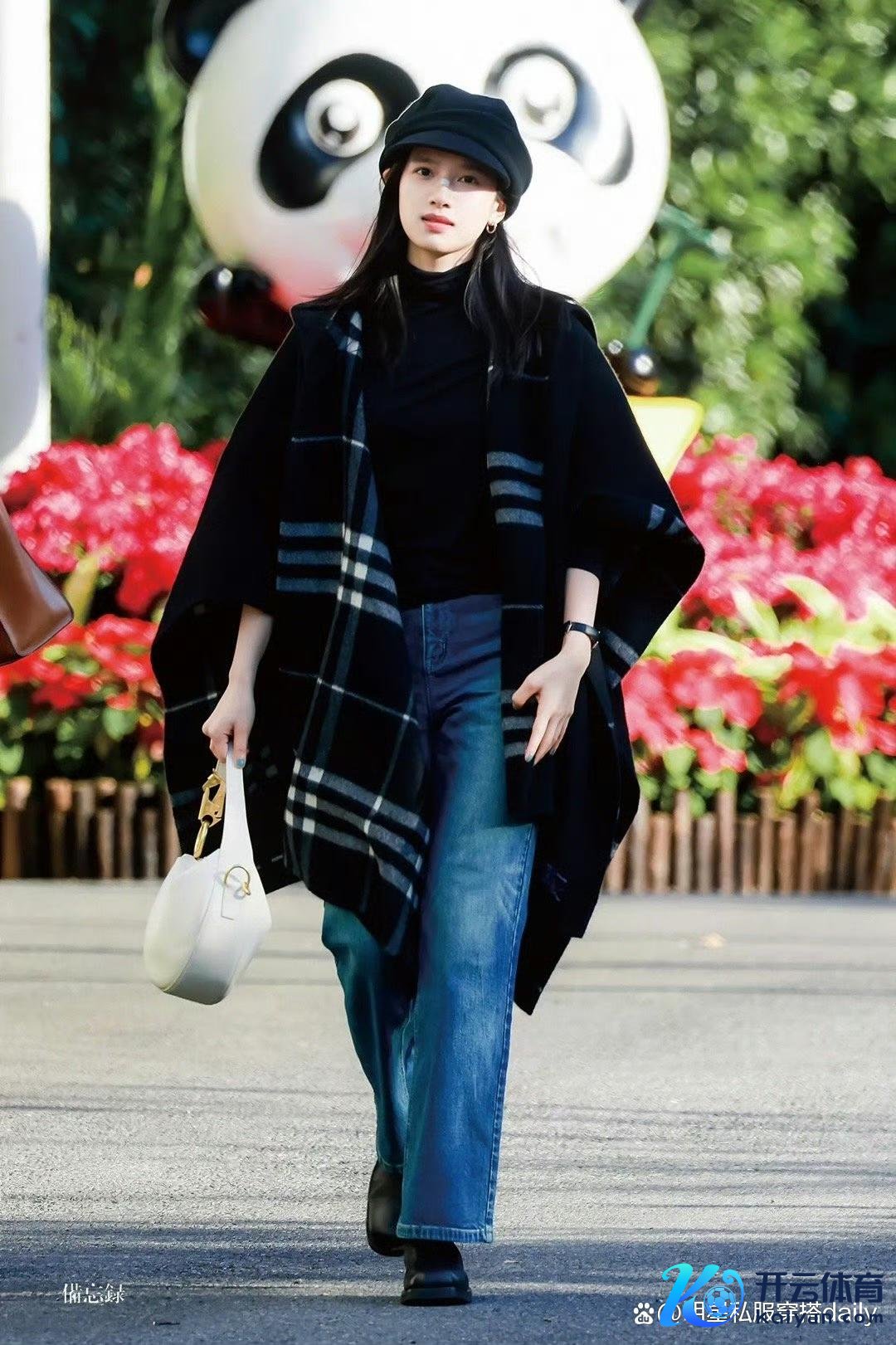 另一套玄色格纹双面披肩大氅大衣的造型则展现了张婧仪文艺而安静的一面。这款大衣的盘算推算节约而不失作风,内搭玄色打底衫,下半身的蓝色九分牛仔裤和玄色短靴更是将安静与前卫完好纠合。
