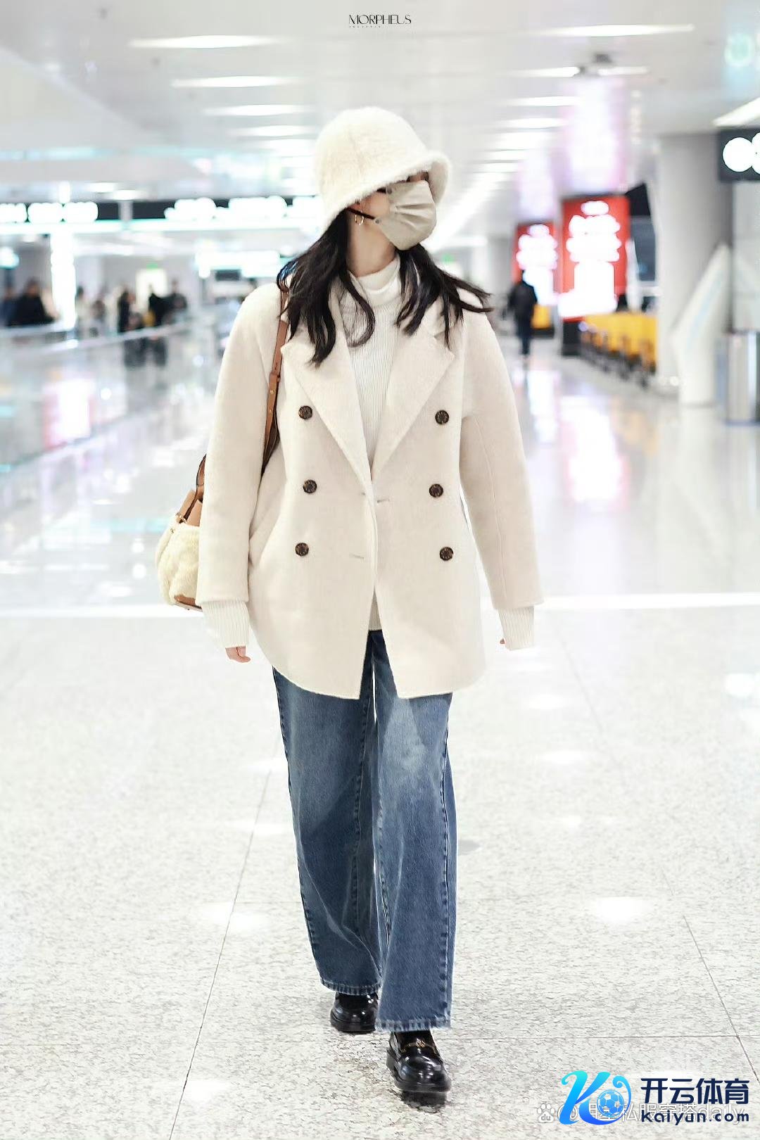 张婧仪身穿白色毛昵西装外衣,内搭白色高领衫,展现出一种簇新而高档的好意思感。下半身的相沿风九分直筒牛仔阔腿裤与玄色漆皮乐福鞋的搭配,既相沿又不失机尚感。头上的白色毛绒渔人帽和棕色拼接毛毛的水桶包更是为举座造型增添了亮点,气质优胜,令东谈主咫尺一亮。