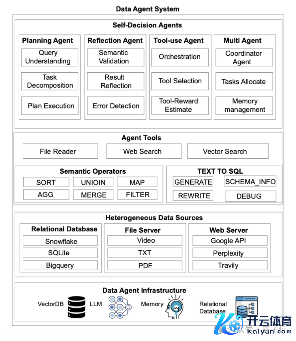 团队还想象了协调Agent-Expert互助框架,同期守旧Data Agent、RAG、语义算子以及四种典型Data Agent责任流模样(想象Planning、用具使用Tool-use、反念念Reflection、多智能体Multi-Agent),可无缝集成不同Data Agent系统架构。
