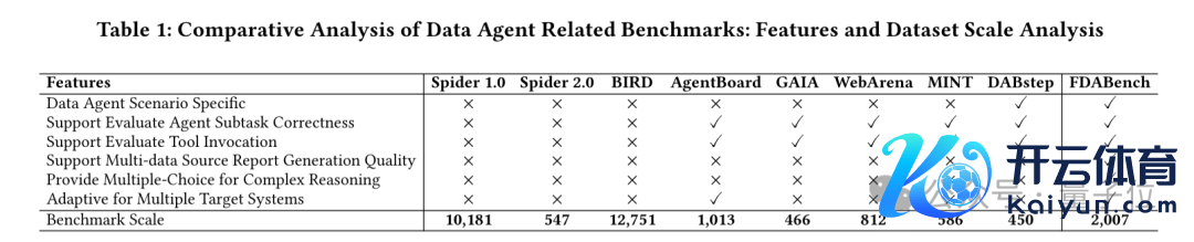 最初,由于难以想象出能评估智能体在多源分析任务中各项期间的测试用例,全面的数据智能体Benchmark仍然缺失;其次,构建聚辘集构化和非结构化数据的可靠测试用例本钱昂贵且极其复杂;第三,现存基准的适合性和通用性有限,导致评估范围短促。
