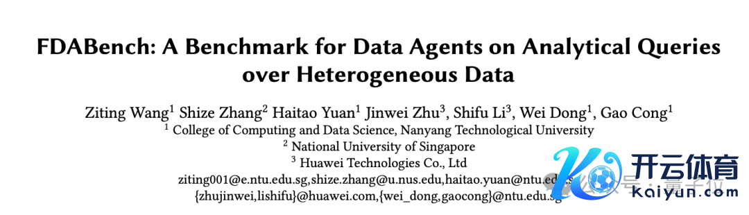 南洋理工大学、新加坡国立大学联袂华为开源推出首个罕见针对数据智能体(Data Agents)异构搀杂数据分析的空洞性基准测试FDABench