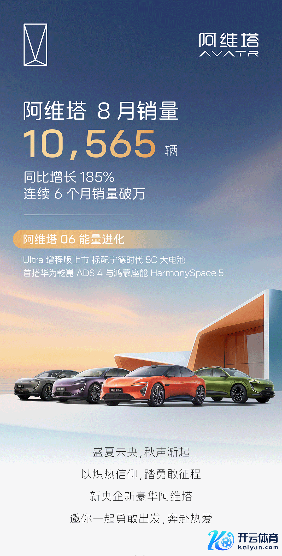 阿维塔:8月销量10565辆,同比增长185%阿维塔:8月销量10565辆,同比增长185%
