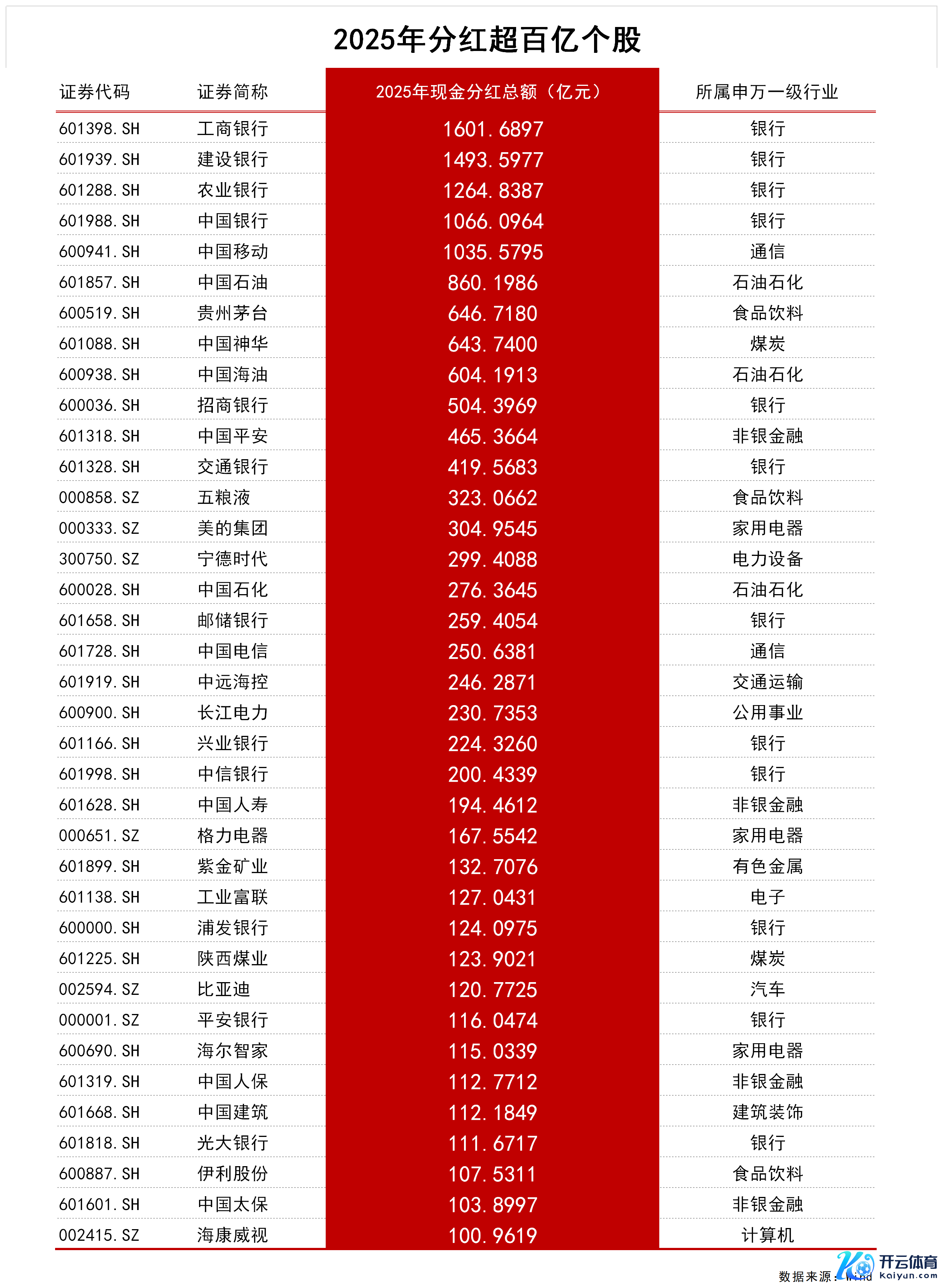 2025年A股上市公司分成超2.63万亿元 5股分成超千亿2025年A股上市公司分成超2.63万亿元 5股分成超千亿