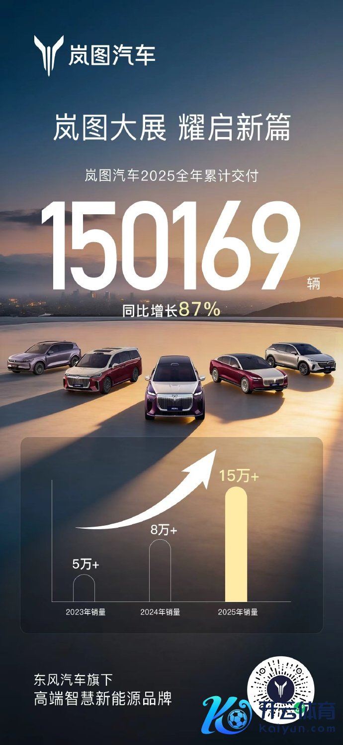 岚图汽车2025年累计录用15万辆,同比增长87%岚图汽车2025年累计录用15万辆,同比增长87%
