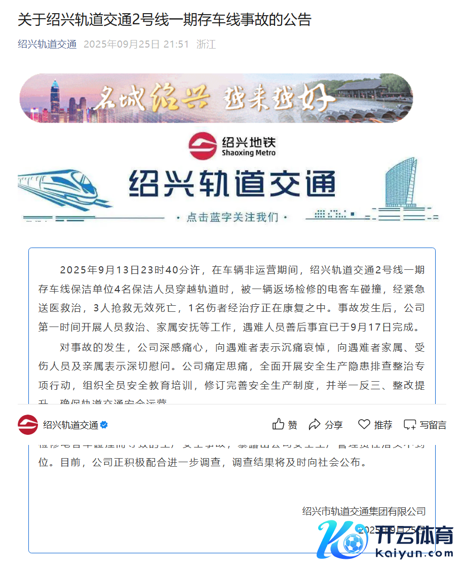 绍兴通报地铁深夜撞东说念主事件:3东说念主抢救无效死字绍兴通报地铁深夜撞东说念主事件:3东说念主抢救无效死字