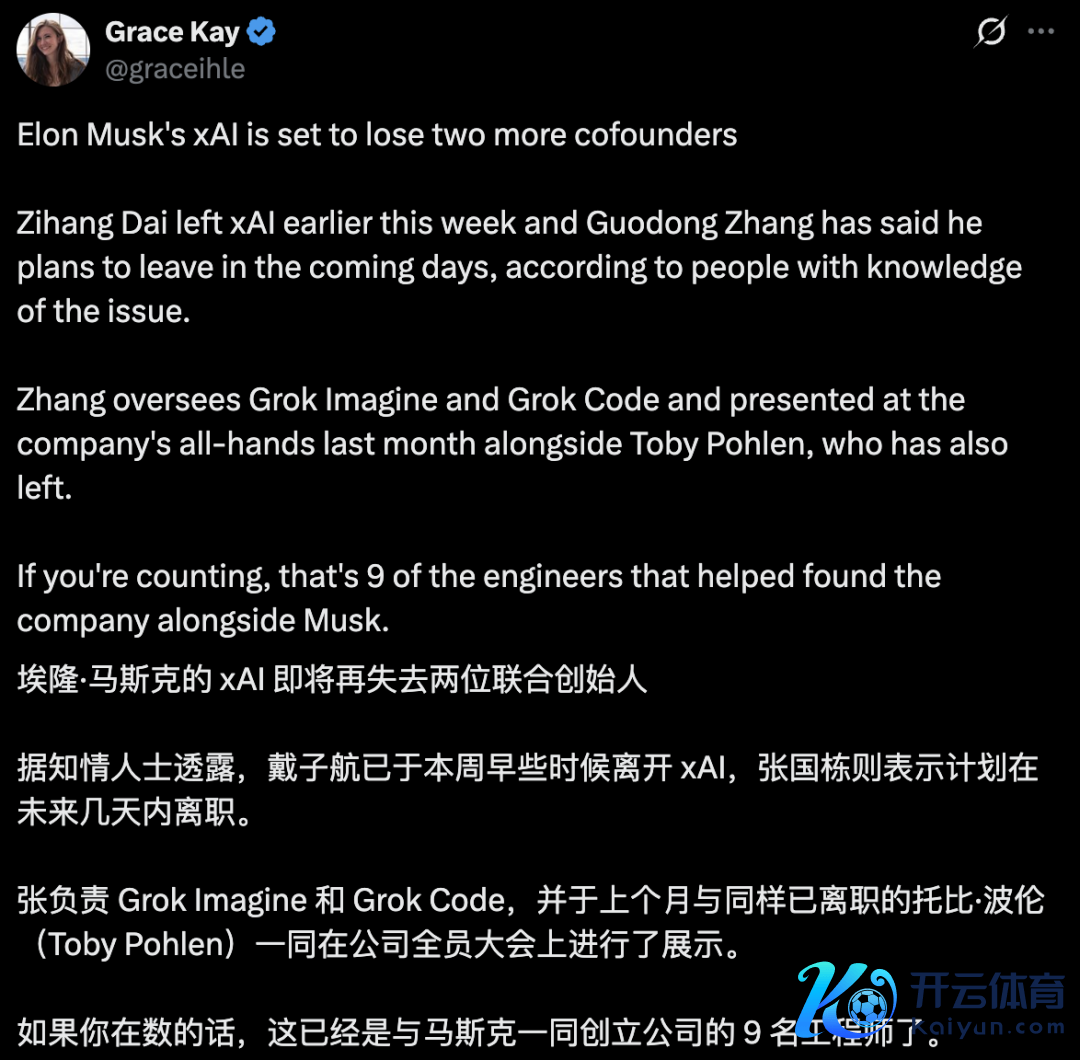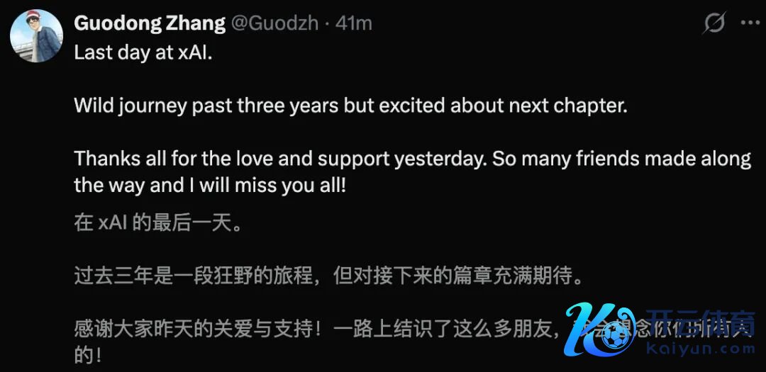 留住一句话:「感谢扫数xAI众人庭,感谢Elon折服这个职责,以及这段一世铭刻的旅程。」