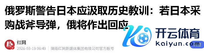 俄罗斯这边也没客气,俄新社报谈,扎哈罗娃18日成功警戒高市,日本采购“战斧”巡航导弹等进犯性火器,也曾超出了耀眼限度,淌若挟制到俄罗斯邦畿安全,俄方必将弃取一切必要顺序。